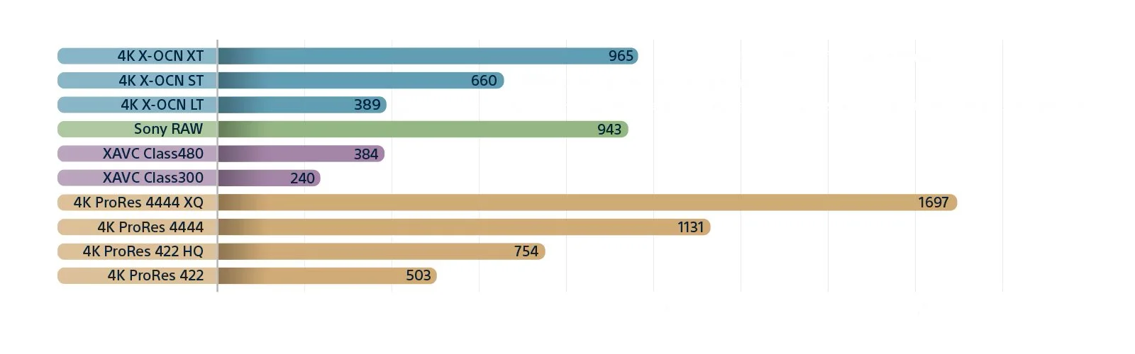 While the FX Cinema Line has an upper limit of 4K DCI on XAVC-I with 12-bit color on its CFast Express Type A memory cards, the Sony Burano steps it up by being able to record in 8.6K X-OCN-LT with 16-bit color on a CFast Express Type B memory card. What’s more interesting is that at 4K X-OCN-LT, the Burano outputs 16-bit RAW at the same file size as 4K XAVC-I with 10-bit 4:2:2 color.